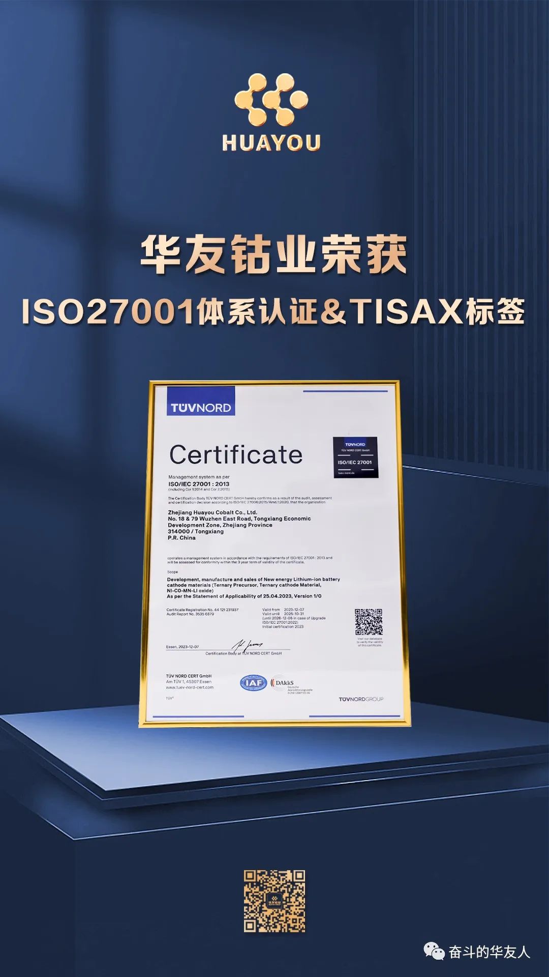 TISAX,由德國汽車工業(yè)協(xié)會(huì)推出,是信息安全領(lǐng)域的最高標(biāo)準(zhǔn)之一,主要用于評估和認(rèn)證汽車供應(yīng)鏈中的信息安全管理體系,以確保汽車行業(yè)的高安全標(biāo)準(zhǔn),保護(hù)敏感信息和防止數(shù)據(jù)泄露。目前,TISAX認(rèn)證在全球范圍的汽車主機(jī)廠商中備受推崇,供應(yīng)商通過了該評估認(rèn)證,即意味著得到了含汽車主機(jī)廠在內(nèi)的所有參與方的認(rèn)可。獲得TISAX標(biāo)簽,意味著華友的信息安全體系得到了業(yè)界的廣泛認(rèn)可,是進(jìn)軍國際新能源汽車供應(yīng)鏈的通行證。