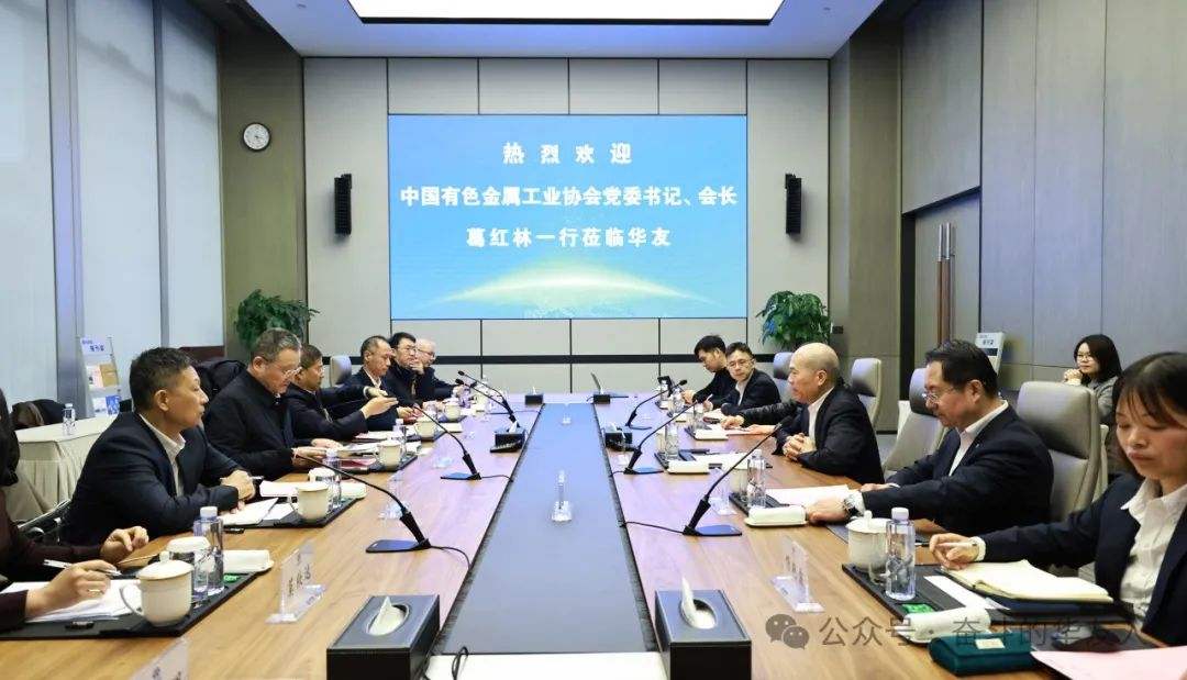 中國有色金屬工業(yè)協(xié)會黨委副書記范順科及協(xié)會相關(guān)部門負(fù)責(zé)人一同調(diào)研;集團(tuán)總裁陳紅良、高級副總裁王軍等陪同座談。