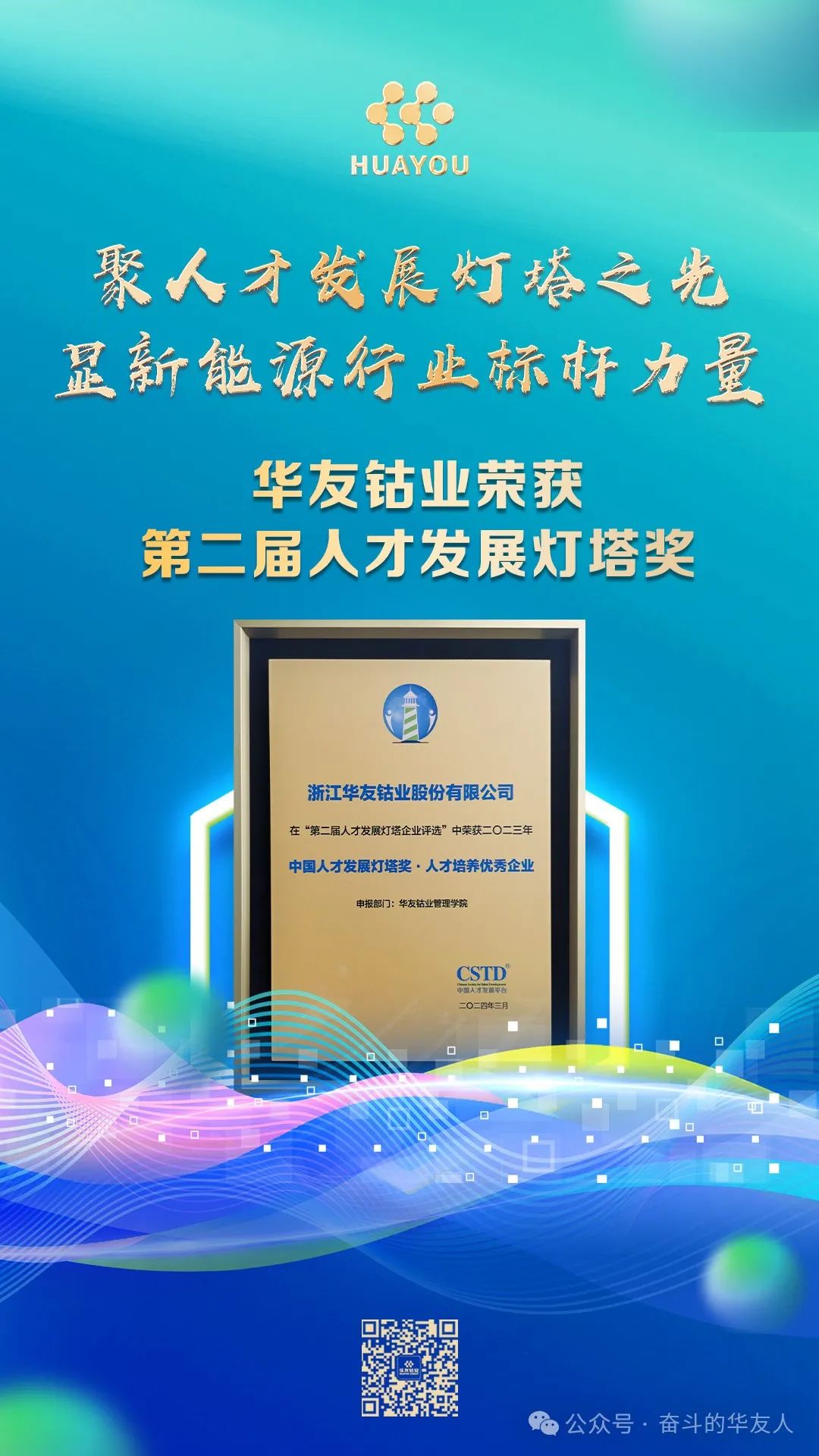 3月21日,由中國領先的人才發展服務平臺CSTD舉辦的 “2024 人才發展燈塔峰會”于上海召開,華友鈷業獲評“2023中國人才發展燈塔獎·人才培養優秀企業”稱號。