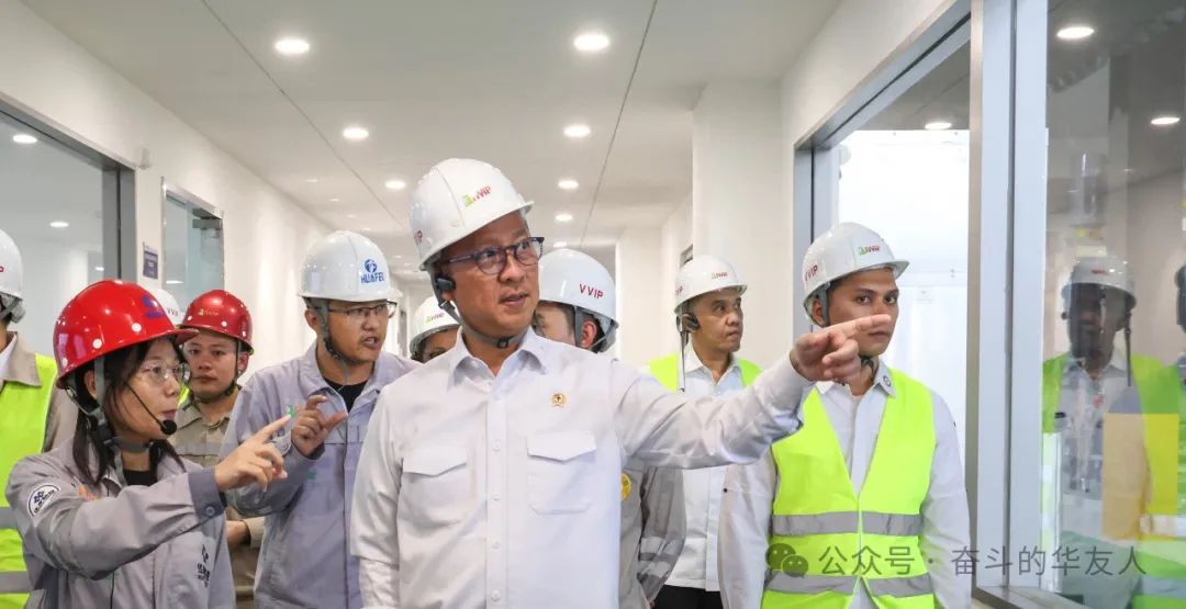 阿古斯·古米旺閣下先后參觀了華飛項目高壓酸浸車間、產品車間以及華能項目展廳、質量檢測中心、主控中心和生產車間,聽取了關于項目概況以及工藝技術、生產規模、產能產量、ESG建設等情況介紹,對華友在印尼一系列項目的成功落地投產表示祝賀。