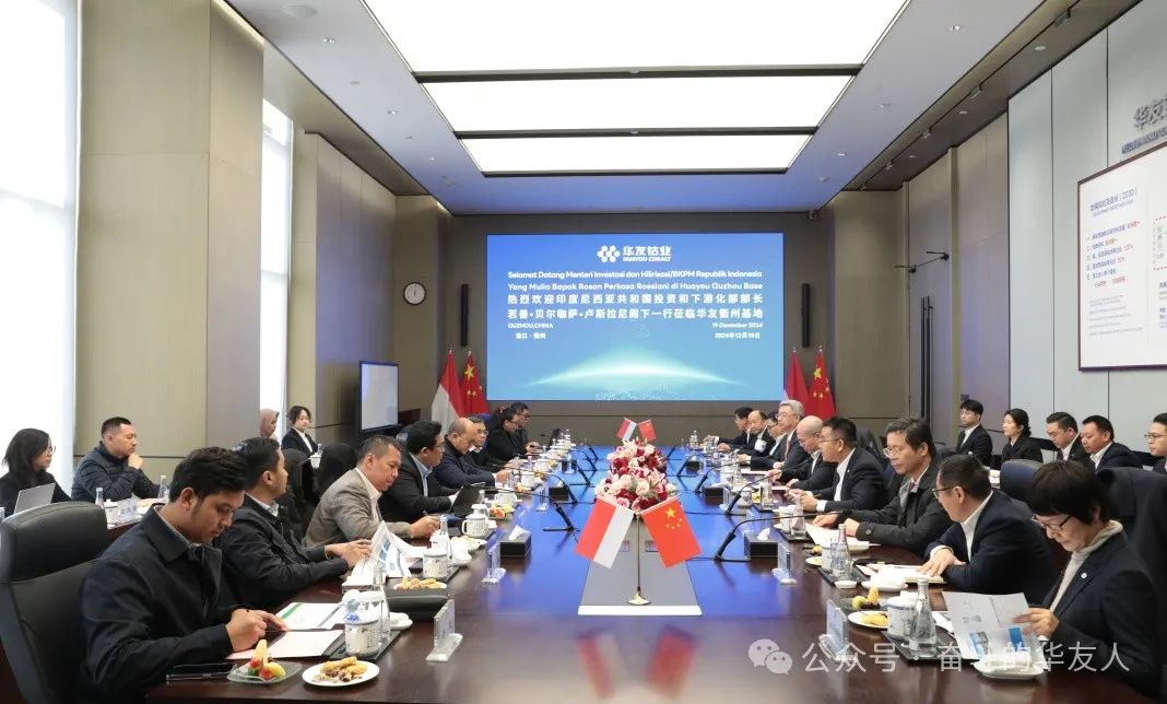 陳雪華董事長對Rosan部長一行的到來表示熱烈歡迎,對劉金成董事長的出席表示感謝,并重點匯報了華友在印尼的投資情況及未來發(fā)展規(guī)劃,陳雪華董事長表示,印尼政府開放、包容,營商環(huán)境良好,發(fā)展機會空間巨大,華友愿進一步加大在印尼的投資,把自身的產(chǎn)業(yè)優(yōu)勢與印尼的資源優(yōu)勢相結(jié)合,助力產(chǎn)業(yè)上下游在印尼的蓬勃發(fā)展,構(gòu)建起更加開放、多元、多主體的全球產(chǎn)業(yè)鏈合作伙伴和產(chǎn)業(yè)生態(tài),主動融入當?shù)厣鐣?、積極參與社區(qū)建設(shè),高水平推進ESG治理,為印尼鎳產(chǎn)業(yè)下游化和新能源鋰電產(chǎn)業(yè)的發(fā)展、印尼社會經(jīng)濟的繁榮、中印尼兩國人民的友誼貢獻華友力量。
