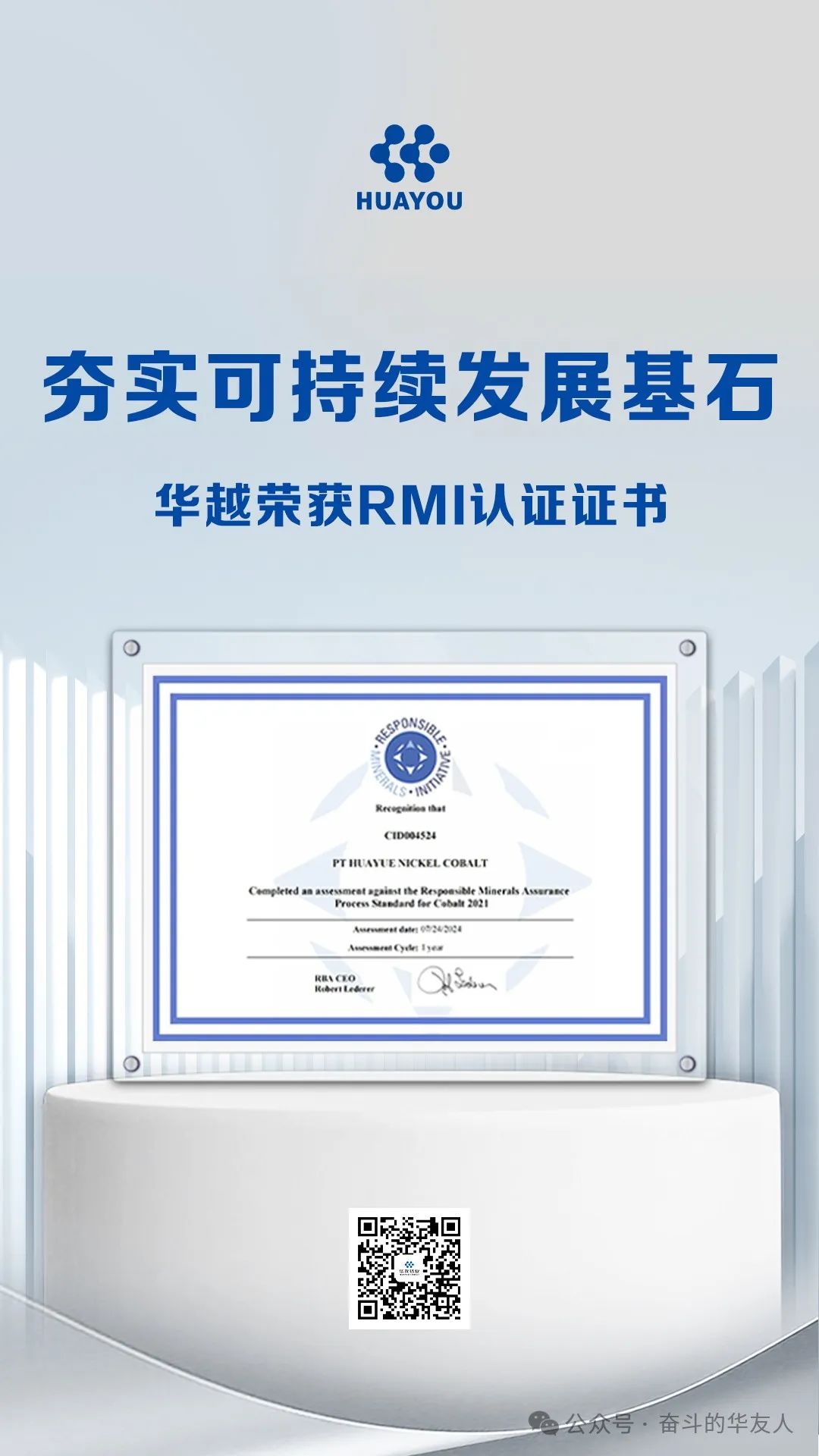 近日,華越鎳鈷(印尼)有限公司獲得負(fù)責(zé)任礦產(chǎn)倡議(Responsible Minerals Initiative, RMI)認(rèn)證,標(biāo)志著公司在負(fù)責(zé)任礦產(chǎn)供應(yīng)鏈管理和 ESG 體系治理方面的努力得到了國際權(quán)威機(jī)構(gòu)的認(rèn)可,進(jìn)一步提升了公司的行業(yè)地位,推動綠色、可持續(xù)的礦產(chǎn)供應(yīng)鏈建設(shè)。