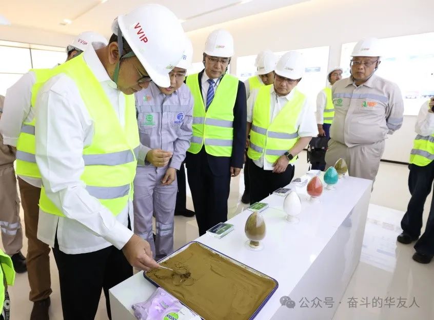Rosan部長一行先后參觀了華飛項目的控制中心、高壓酸浸車間及華能項目的展廳、質量檢測中心、主控中心和生產車間,詳細了解了華友印尼緯達貝鋰電材料產業一體化綠色制造基地各項目的工藝流程、技術應用、生產規模、產能產量等最新進展以及ESG建設等方面的情況。