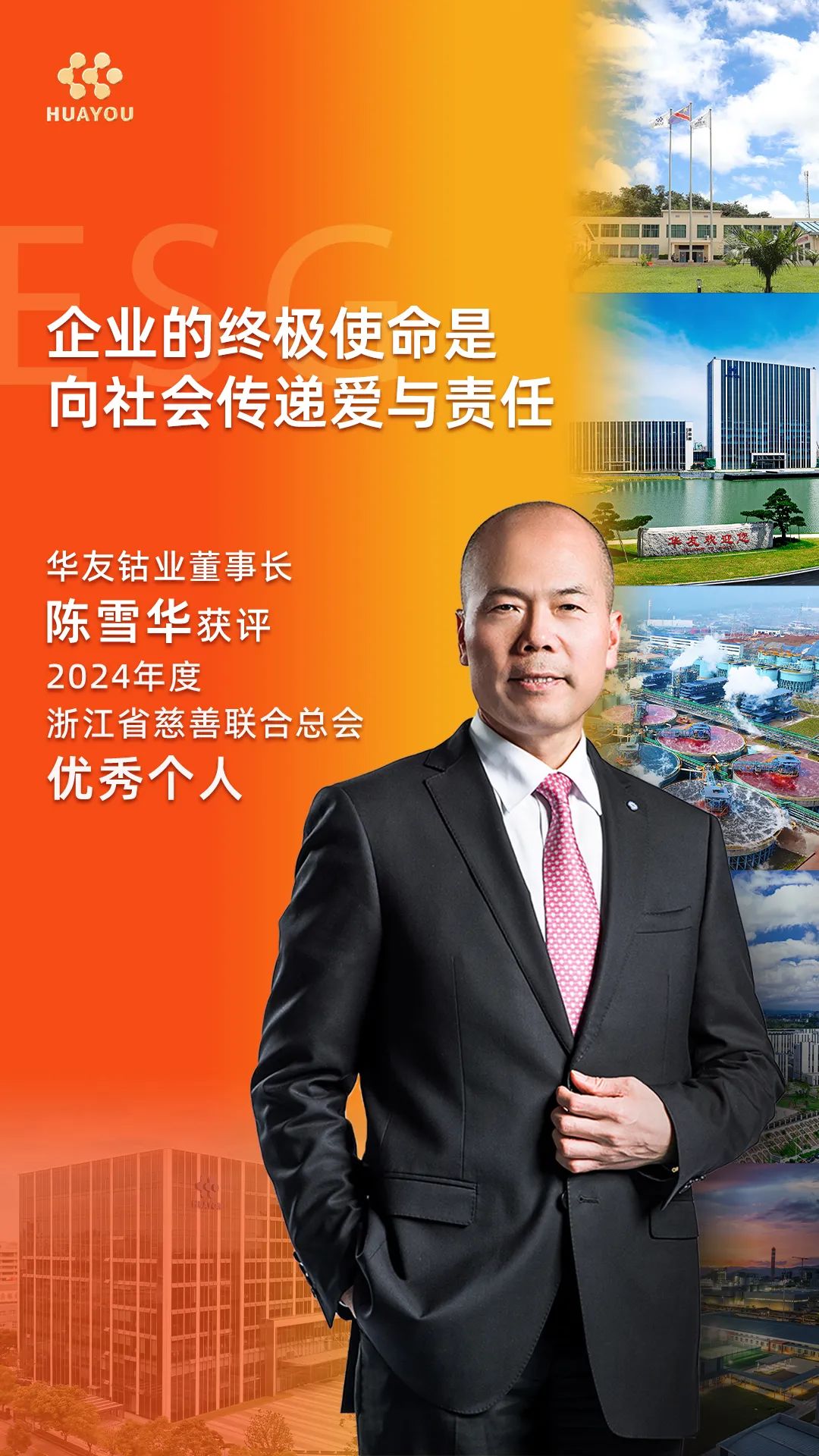陳雪華董事長(zhǎng)主導(dǎo)啟動(dòng)“華友控股慈善共富基金會(huì)”,支持衢州市四省邊際共同富裕示范區(qū)建設(shè),在教育、扶貧、鄉(xiāng)村振興等多個(gè)領(lǐng)域開展慈善活動(dòng),2024年累計(jì)慈善投入6925.16萬(wàn)元,代表著華友持續(xù)向社會(huì)傳遞愛與責(zé)任,踐行其“企業(yè)的終極使命是向社會(huì)傳遞愛與責(zé)任”的理念。近五年,他個(gè)人先后榮膺中國(guó)國(guó)家萬(wàn)人計(jì)劃科技創(chuàng)業(yè)領(lǐng)軍人才、中國(guó)上市公司ESG先鋒人物、十大風(fēng)云浙商、有色金屬工業(yè)境外資源開發(fā)戰(zhàn)略功勛人物、浙江省優(yōu)秀企業(yè)家等稱號(hào);公司躋身中國(guó)企業(yè)500強(qiáng)、全球新能源企業(yè)500強(qiáng)等七大權(quán)威榜單,獲第七屆世界浙商大會(huì)授予“高質(zhì)量發(fā)展領(lǐng)軍企業(yè)”——這份個(gè)人與企業(yè)交相輝映的榮譽(yù)簿,正是商業(yè)價(jià)值與社會(huì)擔(dān)當(dāng)?shù)耐昝拦采?/span>