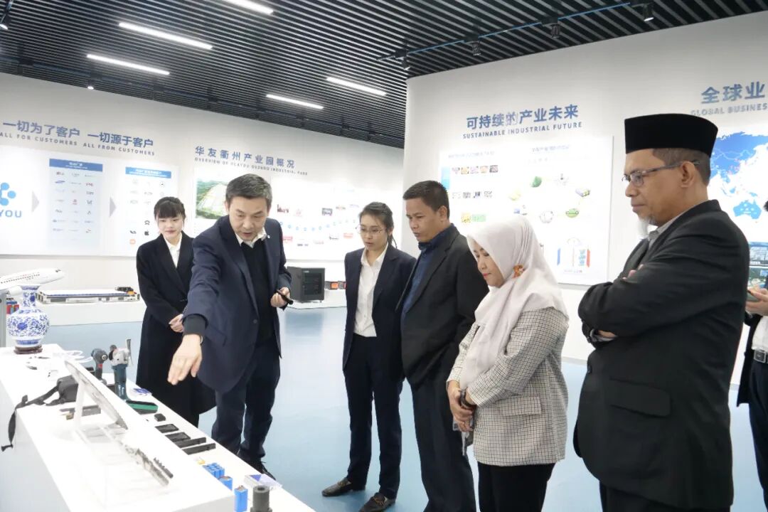 來訪期間,魯斯迪·努爾校長一行實地參觀了華友衢州產(chǎn)業(yè)園區(qū)前驅(qū)體、正極材料等主要生產(chǎn)車間,走訪了衢州職業(yè)技術(shù)學(xué)院校史館、數(shù)字中樞、工業(yè)互聯(lián)網(wǎng)實訓(xùn)中心、智能制造實訓(xùn)中心等。
