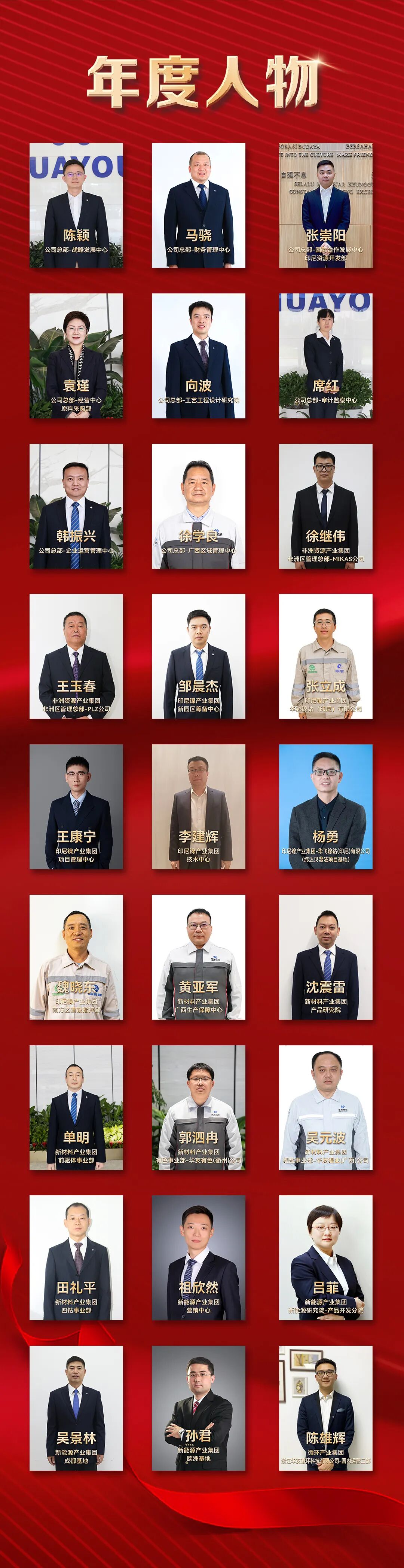 披荊斬棘、逢山開路,你們的腳步踏遍了祖國的四季輪回,你們走過了螞蟻包叢生的旱季雨季,吹過了印尼海島赤道的海潮熱浪,嘗過了異國他鄉(xiāng)的酸甜苦辣,依舊精神抖擻,以奮斗的腳步丈量華友事業(yè)的遼闊天地。你們無愧于華友年度人物的至上榮耀!