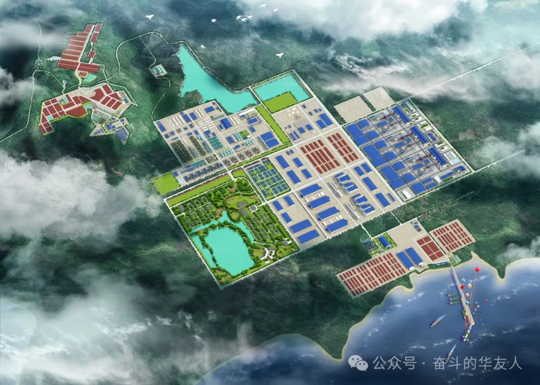 2024年11月,園區(qū)開始建設(shè)施工,12月份對(duì)生產(chǎn)區(qū)域開始場(chǎng)平工作。園區(qū)規(guī)劃了生產(chǎn)區(qū)、生活區(qū)、電廠、碼頭、公輔設(shè)施五大功能區(qū),其中一期規(guī)劃高壓酸浸濕法冶煉、火法、前驅(qū)體、鋰鹽、正極材料等生產(chǎn)項(xiàng)目,并計(jì)劃在2030年,建成從礦山到電池材料再到電池回收的鋰電池閉合產(chǎn)業(yè)鏈。